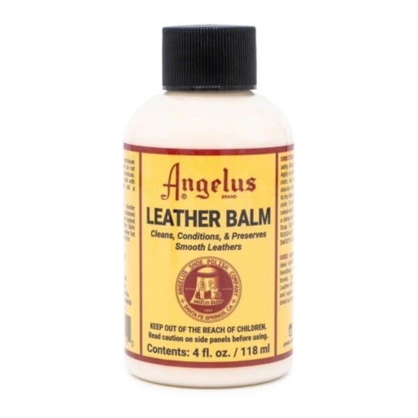Angelus Leather Balm is a blend of waxes and conditioning oils designed to clean, soften, and restore smooth leather in a single step.