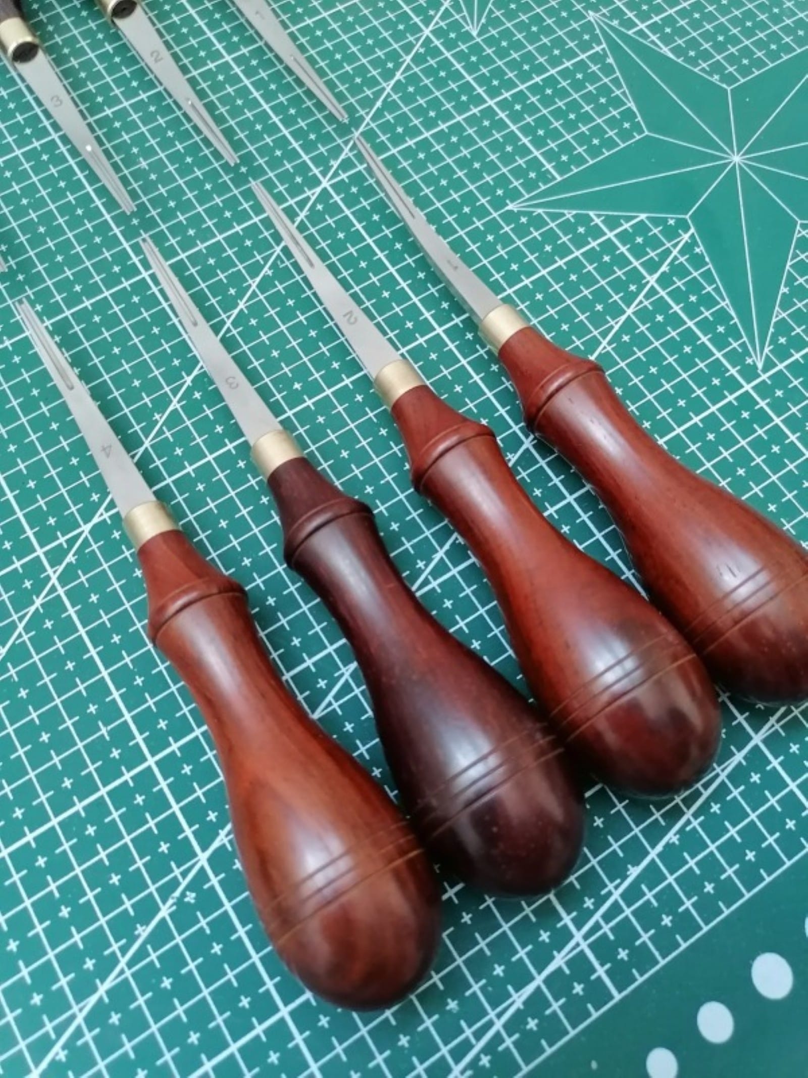 Available with either an ebony or rosewood handle, each tool is balanced and comfortable in hand, suited for both light detailing and heavy-duty edge work.