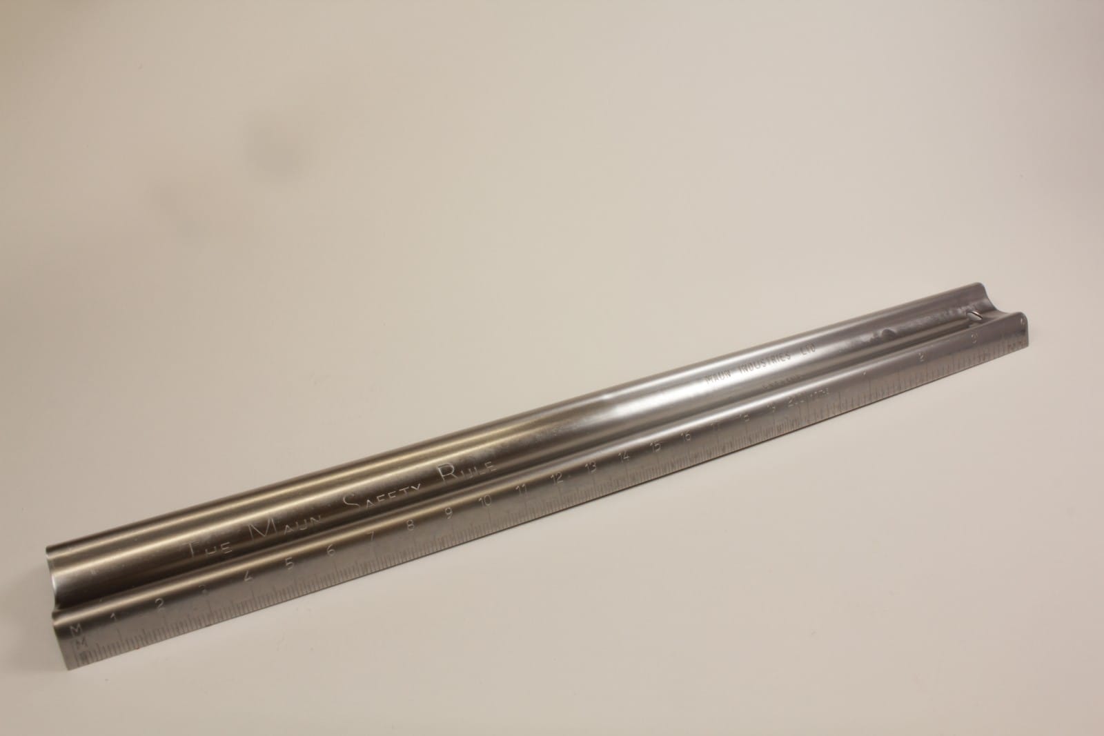 The Maun Metal Safety Rule is a durable stainless steel measuring and cutting guide designed with safety in mind.