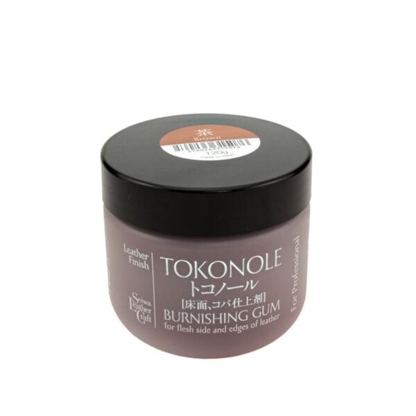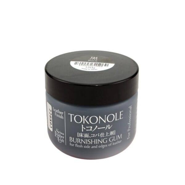 Seiwa Tokonole is a water-based leather edge burnishing compound used to slick, seal, and smooth leather edges and flesh side.
